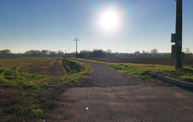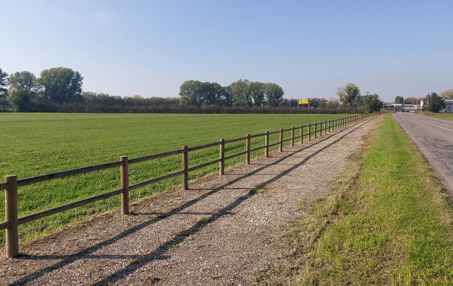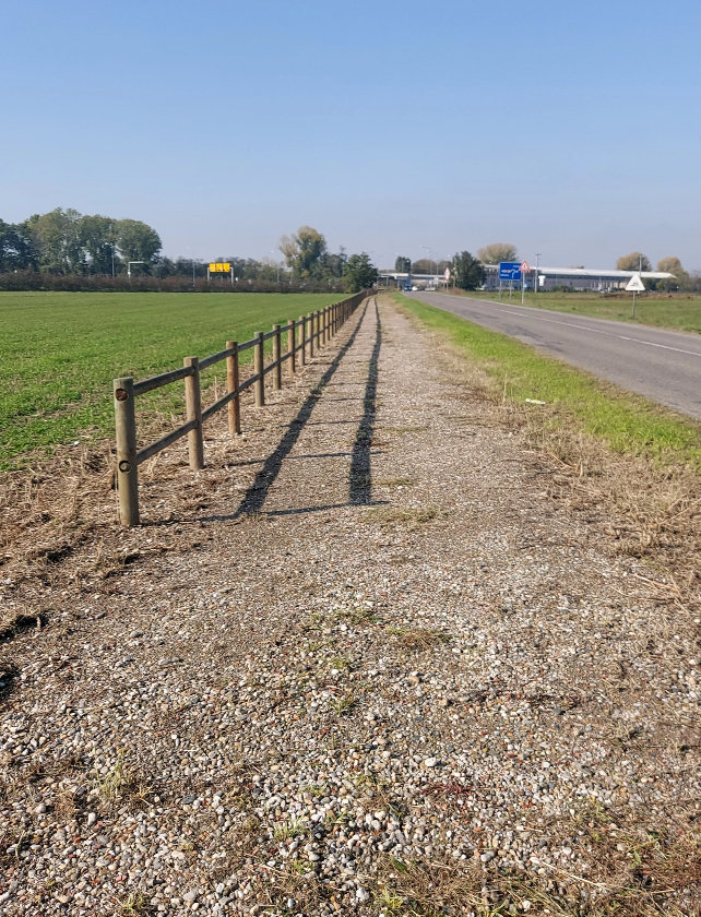 Il percorso ha inizio da Via Cavour e termina all’imbocco della strada statale 617 Bronese, per ml. 680 circa complessivi, la larghezza della corsia per senso di marcia è di ml. 1,25 per complessivi ml. 2,50, realizzatata con pavimentazione ecologica mediante stesura di inerte.