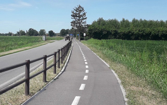 La pista ciclabile in progetto favorisce il collegamento tra due tratti ciclopedonali esistenti.